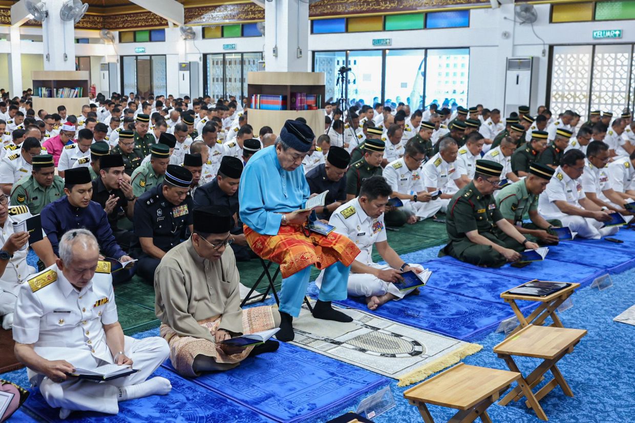 由海军总部宗教主任艾哈迈德·卡米尔·阿卜杜拉中校主持的亚辛朗诵和塔利勒约有3 000名马国人民军人员参加。——马来西亚