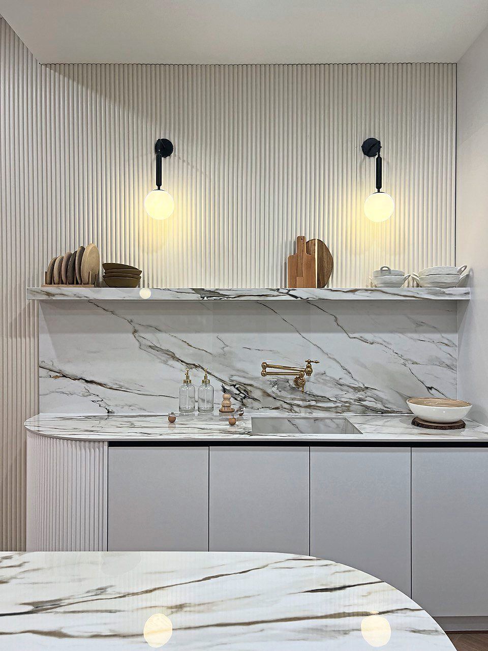 Shasha经常在Instagram上分享她的装修之旅和装饰项目,她补充说:“我们实际上为承包商从未遇到过的设计准备了一份施工方法声明,比如我们生活大厅的弯曲条形LED照明,以及使用干墙作为电视面板和陈列室的橱柜。”